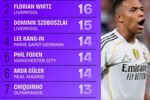 体育资讯11月27日讯 本赛季欧冠5轮战罢,数据网站Squawka盘点了本赛季欧冠创造机会榜,具体如下: