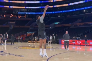 久疏战阵!浓眉赛前进行三分投篮训练 底角三分4投仅1中