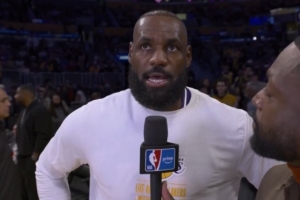 体育资讯11月29日讯 今日,湖人在NBA杯赛中129-119主场击败独行侠。赛前,湖人前锋詹姆斯接受了NBA名宿韦德的采访。