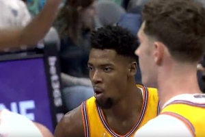 不多见呀!英格拉姆罚球线干拔中投 米勒侧翼飞过来大帽扇掉