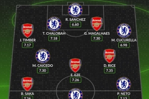 体育资讯11月30日讯 本轮英超焦点战阿森纳对阵切尔西即将打响,数据网站Whoscored也盘点了本赛季英超两队队员场均评分最高阵,具体如下: