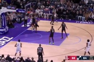 亚当斯单手帅气抓帽 推反击后接杜兰特分球转身霸王暴扣