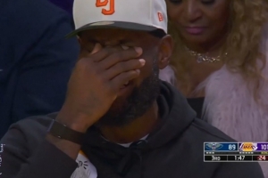 克莱伯上篮被篮筐帽了 詹姆斯在场边捂着脸笑不停🤣