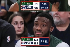 从领先16分到3分输球!雄鹿惨遭奇才翻盘 字母哥哥展现表情管理