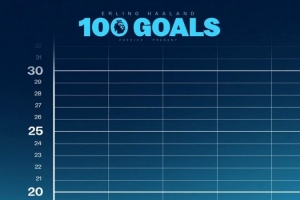 达成百球里程碑!曼城官方社媒晒哈兰德英超进球曲线