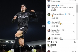双响!福登社媒庆祝胜利:比赛并不完美,但很高兴能够取胜