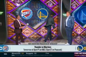 麦迪展望勇士VS雷霆 主持人称库里不打 麦迪扔手卡:Damn!那算了
