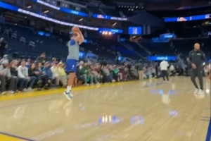小吧现场直击小库里赛前热身 状态很不错&不像很久没打球的样子