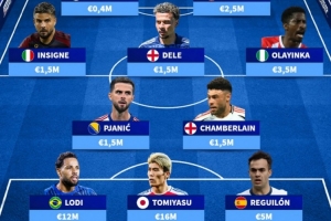 中场:皮亚尼奇(150万欧)、张伯伦(150万欧)、因西涅(150万欧)、阿里(150万欧)、奥拉因卡(350万欧)