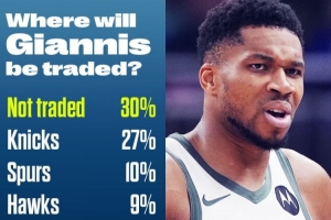 字母哥下家概率:留队30%居首 尼克斯27% 马刺10% 火箭7% 湖人3%