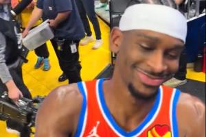 大将之风!SGA笑对勇士球迷的面嘲 并给球迷玩具签名