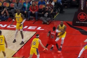 没站稳!詹姆斯补防犯规 湖人挑战失败