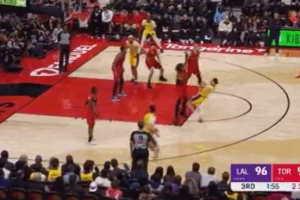 手上真有活儿!里夫斯身体失衡 随手一扔直接打成2+1