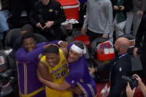 笑死!八村压哨三分绝杀后径直跑回更衣室 被海斯&布朗尼等人抓回