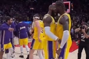 八村塁绝杀后 詹姆斯在场上和湖人队员们挨个撞胸庆祝💥