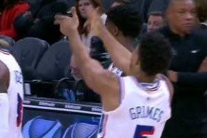 砰砰砰!格莱姆斯3+1杀死比赛 对着替补席摆出手枪姿势庆祝!