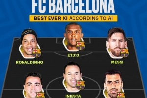 体育资讯12月6日讯 Onefootball社媒晒AI评出的巴萨队史最佳阵容,梅西、小罗、埃托奥组成锋线三叉戟。