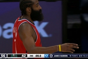 听牌历史前十!哈登急停晃飞防守中投命中 半场砍19分&仅差1分