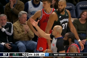 塔被推了!戈贝尔再被吹犯规 累计6犯离场&康利替补上场