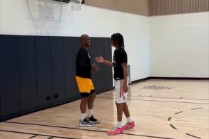 回家带娃🏀保罗与儿子一起训练&还玩空接 CP4身穿马刺训练服