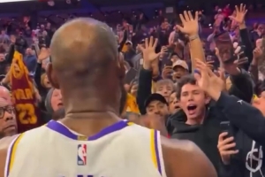 原味收藏!费城球迷赛后守候詹姆斯 老詹将毛巾 手环赠予球迷