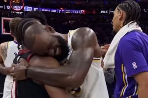 关系太好了!比赛结束后詹姆斯依偎到马克西肩头&双方嬉戏打闹
