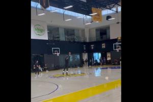 复出!里夫斯赛前热身状态不错 左侧45°三分5投4中