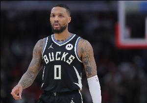 雄鹿球星利拉德本场比赛独自带队,上半场他作为球队主要进攻发起点打得不错,帮助球队咬住比分。