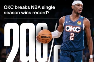 24胜1负&将破纪录?美媒更新雷霆破73胜概率——29%