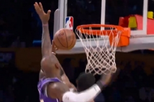 说我不防守?福克斯抢断试图上篮 詹姆斯回追左手钉板大帽!