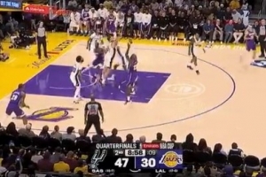 自己来吧!詹姆斯借掩护中投命中 打破湖人得分荒