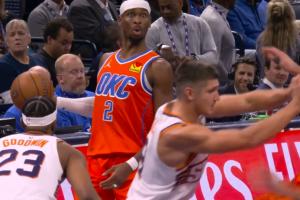 在比赛中,格雷森·阿伦恶意犯规霍姆格伦被驱逐,亚历山大在旁边直接看呆了。