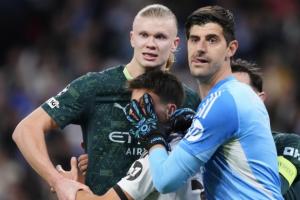 左右为男!175居莱尔环抱盯防195哈兰德 2米库尔图瓦无情糊脸🤣