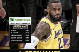 詹姆斯每万分所用场次:1万分至2万分358场最快 3万至4万分368场