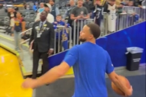 还能更离谱吗?库里在球员通道跨越全场抡进了一记超超超超远三分