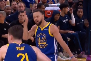 针对性打击!库里强攻戈贝尔得手 随后正面颜射三分