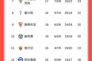 西甲积分榜:皇马止连败暂升第二,落后巴萨4分