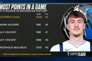 独行侠队史新秀单场得分榜:弗拉格42分并列第一 4人砍下过40+