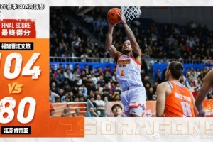 全场比赛结束,最终江苏肯帝亚以80比104不敌福建晋江文旅。数据方面:爱德华兹15分2篮板4助攻;庞峥麟14分3篮板4助攻;亨特12分5篮板5助攻;刘泽希11分2篮板2助攻;贾尔斯10分6篮板2助攻。