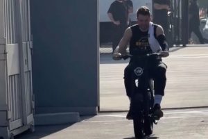 发福利啦!东契奇训练后为全队送上圣诞礼物电动车 本人亲自试骑