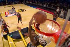 哈特只能一楼观看!文班挡拆顺下 二楼接瓦塞尔高抛空接背扣砸进
