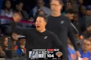 尚帕尼三分命中但裁判吹进攻犯规 米奇不满暴怒挑战成功但吃T