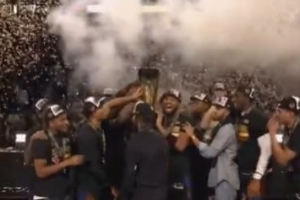 荣耀时刻!布伦森&唐斯代表球队共同举起冠军奖杯