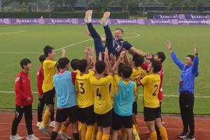 萨沙:我其实接手球队也不久,满打满算也就一个多月的时间。可能也是因为我刚来,足校的领导并没有给我们太大的压力,所以在执教理念上,我是从最基本的东西开始做的,也就是我们说的防守。在整个备赛的过程中,并没有一些特别的战术,或者什么东西。因为我来到这里就看到一支这么优秀的球队,球员们都很有潜力,但是我看不到一个“团队”。所以我把“团队足球”的理念传递给大家之后,再去参加比赛。