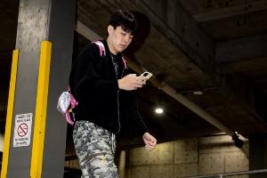 😝开拓者众人入场照 杨瀚森背着粉色小书包专心玩手机