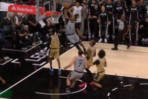夸张弹速!卡斯尔反击接福克斯传球 瞬间起飞单臂炸扣