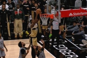极限操作!萨尔0.1秒压哨空接扣篮得分