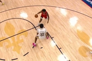 关键球!阿门过掉奎因冲击篮筐得手 帮助火箭占据主动