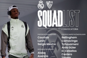 体育资讯12月20日讯 北京时间12月21日凌晨4:00,2025-26赛季西甲联赛第17轮,皇马将在伯纳乌球场迎战塞维利亚。赛前,皇马官方公布球队本场大名单,巴尔韦德缺席,阿拉巴、门迪和卡马文加在列。