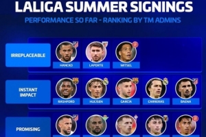 体育资讯12月21日讯 《转会市场》列出了本赛季多位西甲新援,并根据表现为他们进行了评级,拉什福德、赫伊森等5将获评第2档,阿诺德获评第5档。